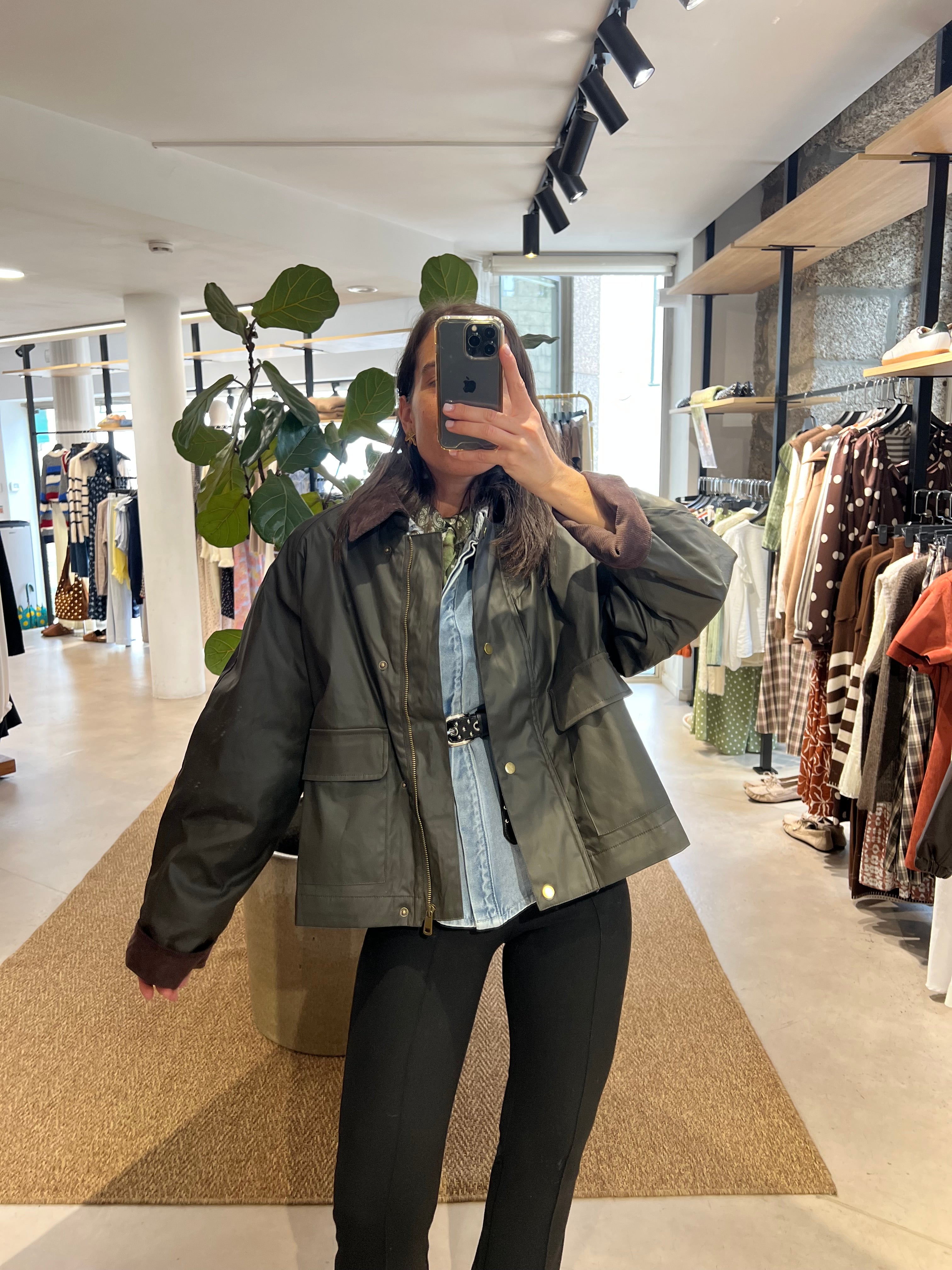 Modelo mede 1.67 e veste o Tamanho S/M.