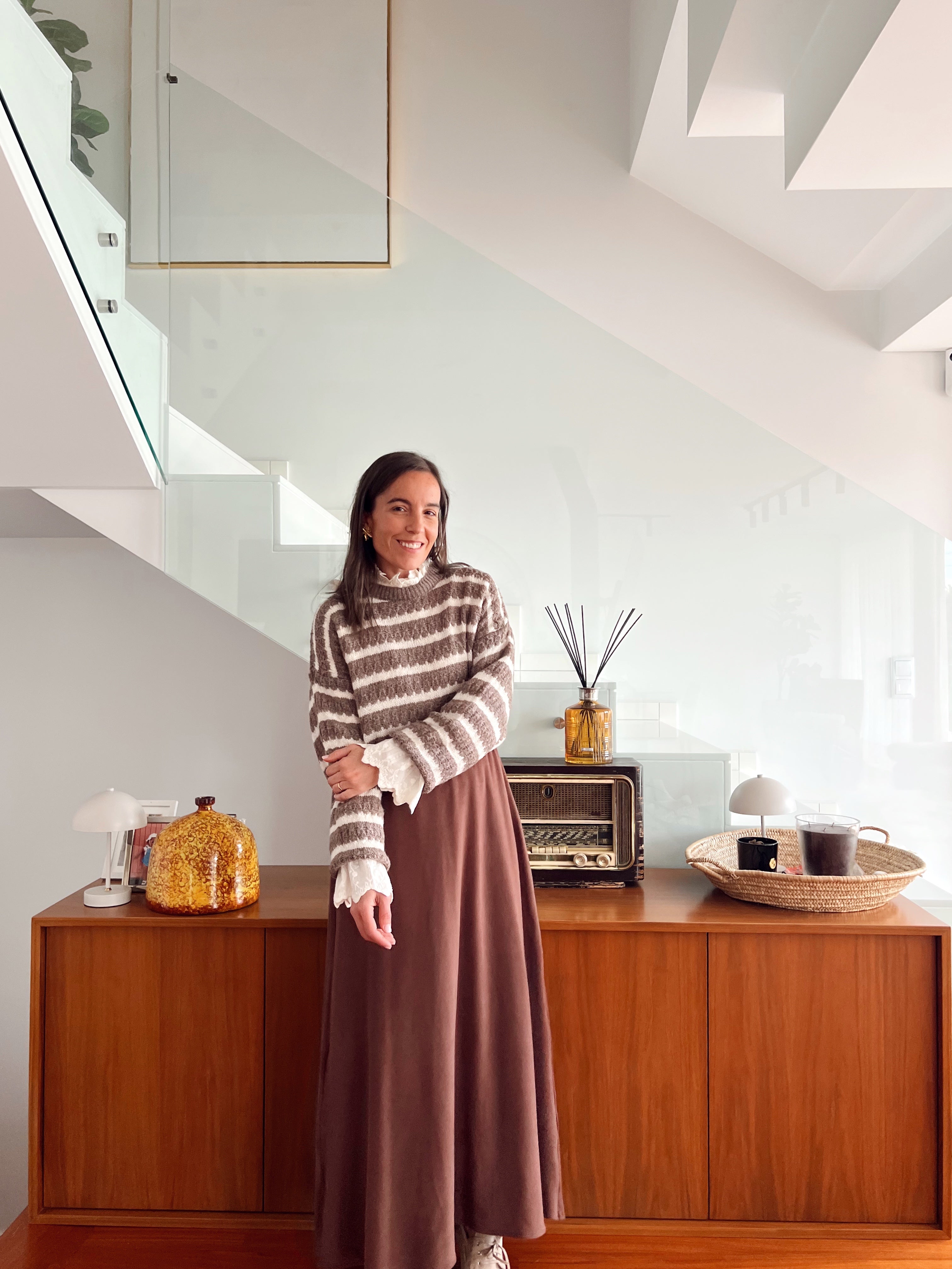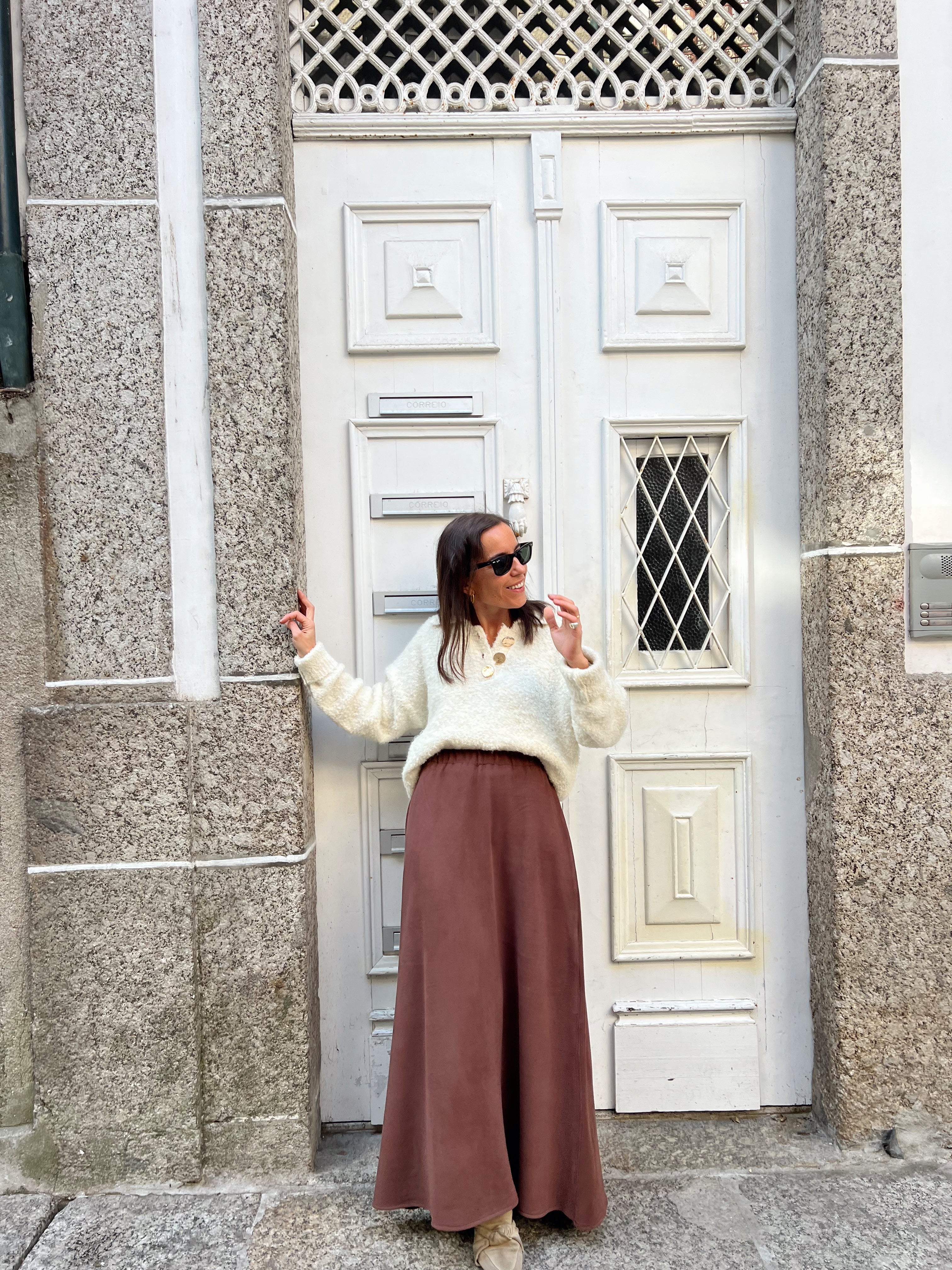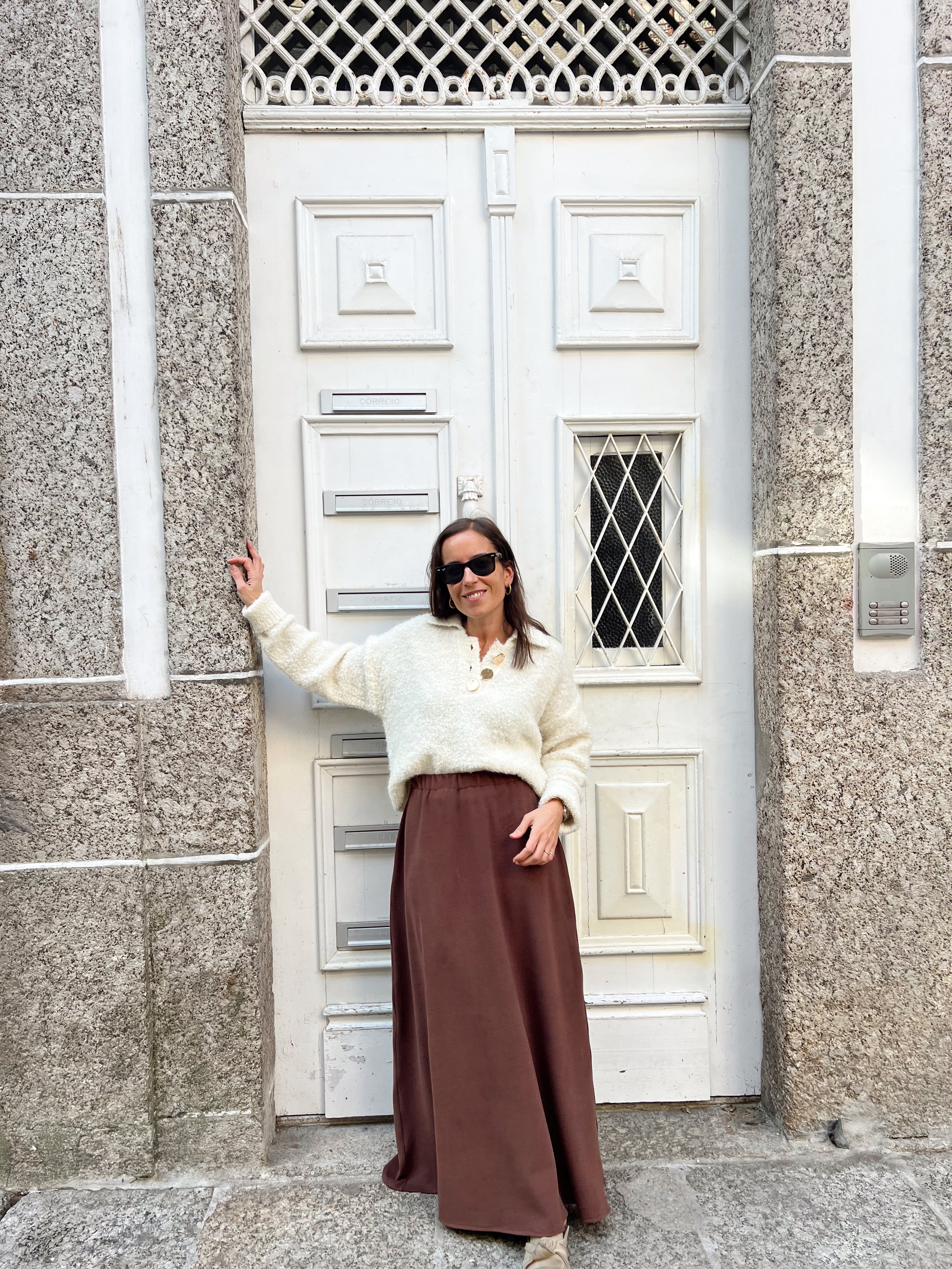 Modelo mede 1.61 e veste o Tamanho S/M.