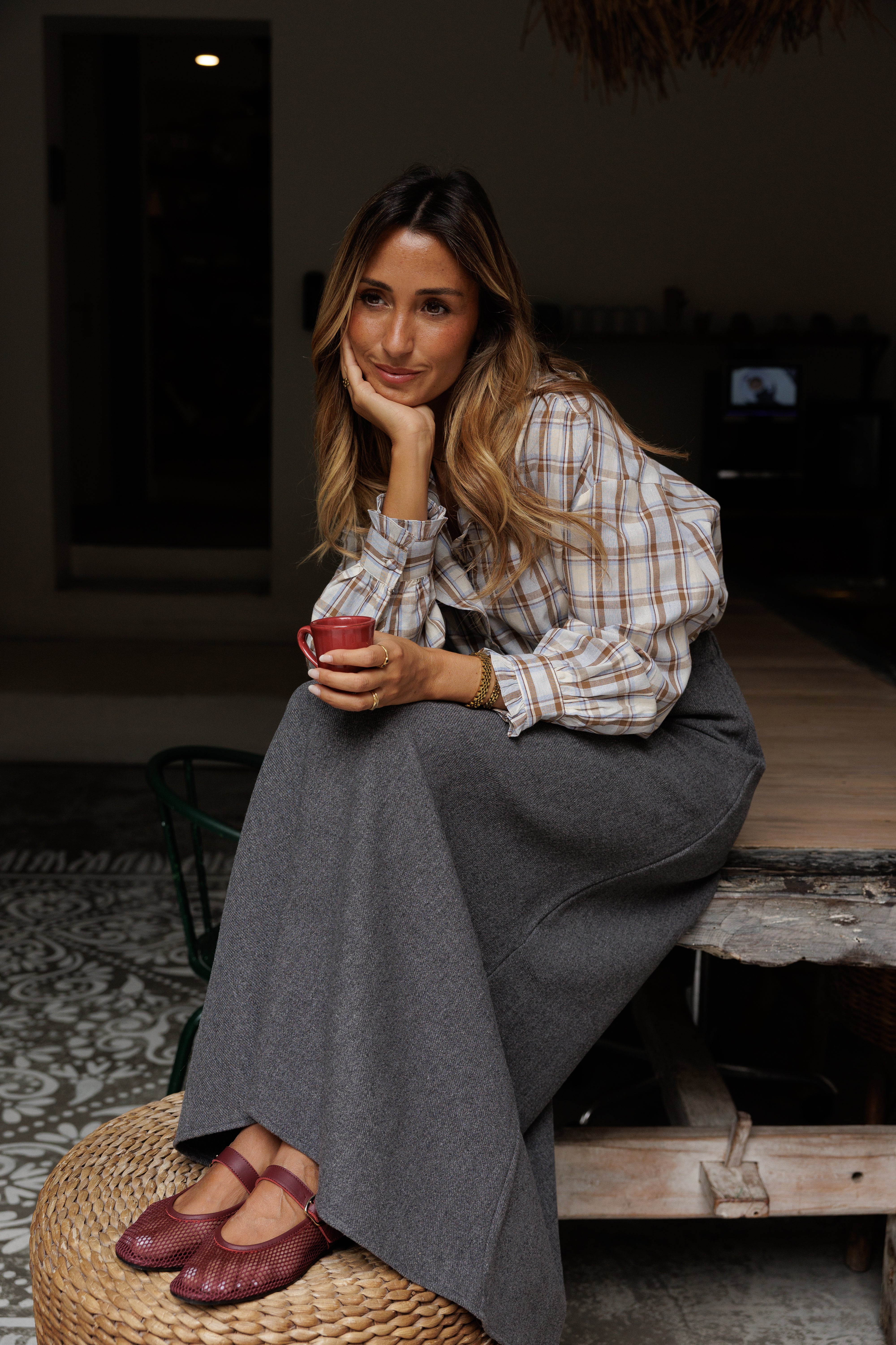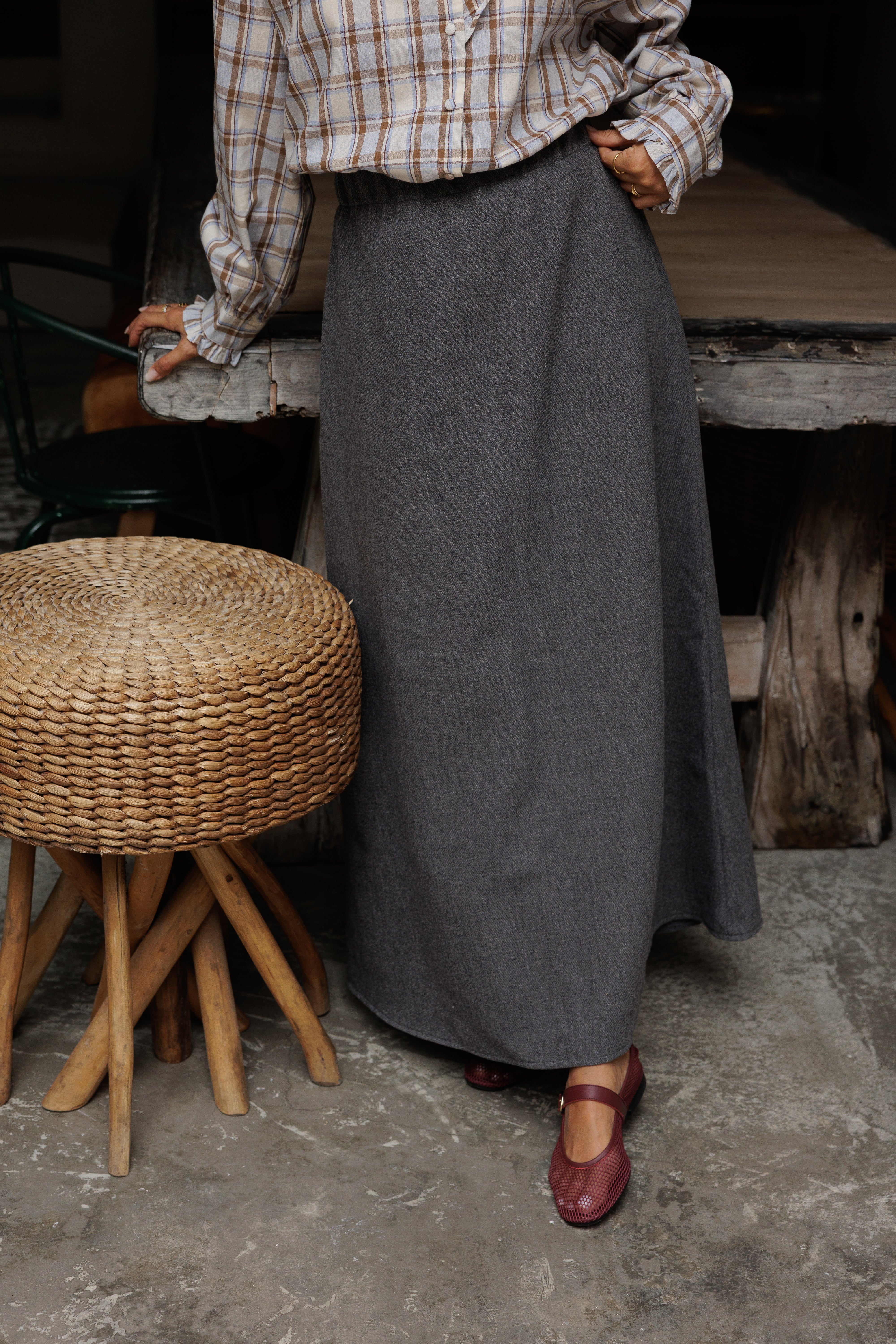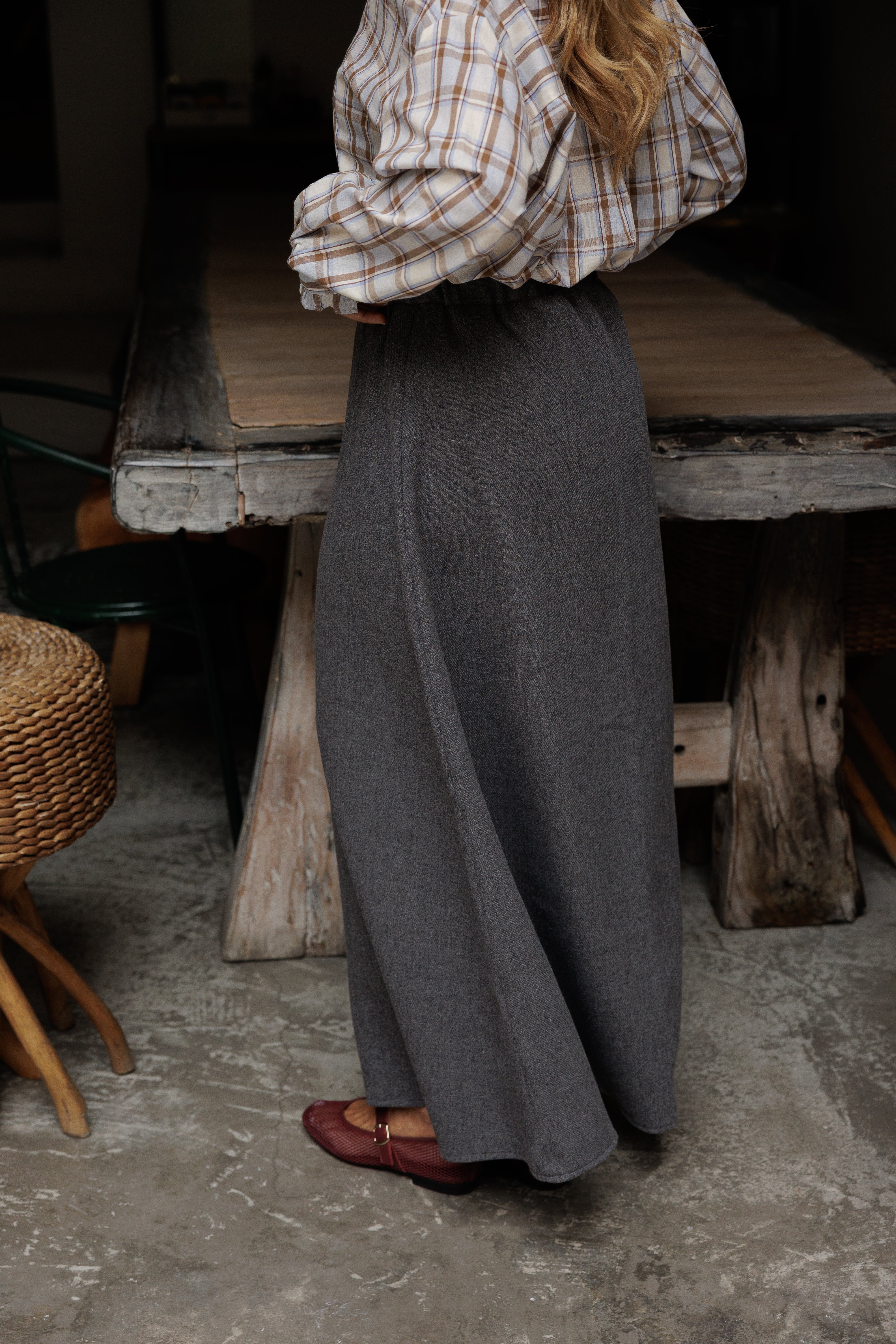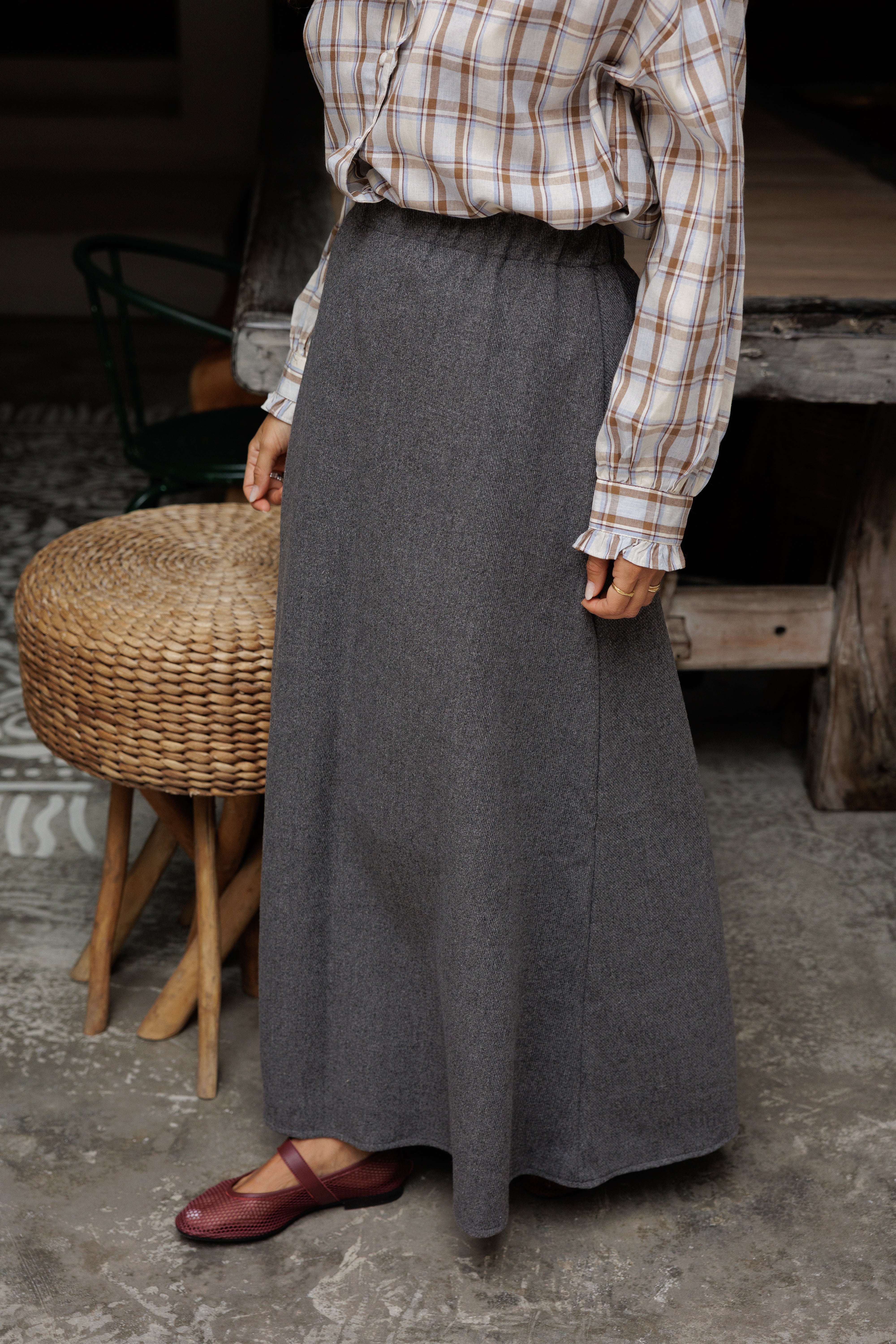 - Saia com elástico na cinta.