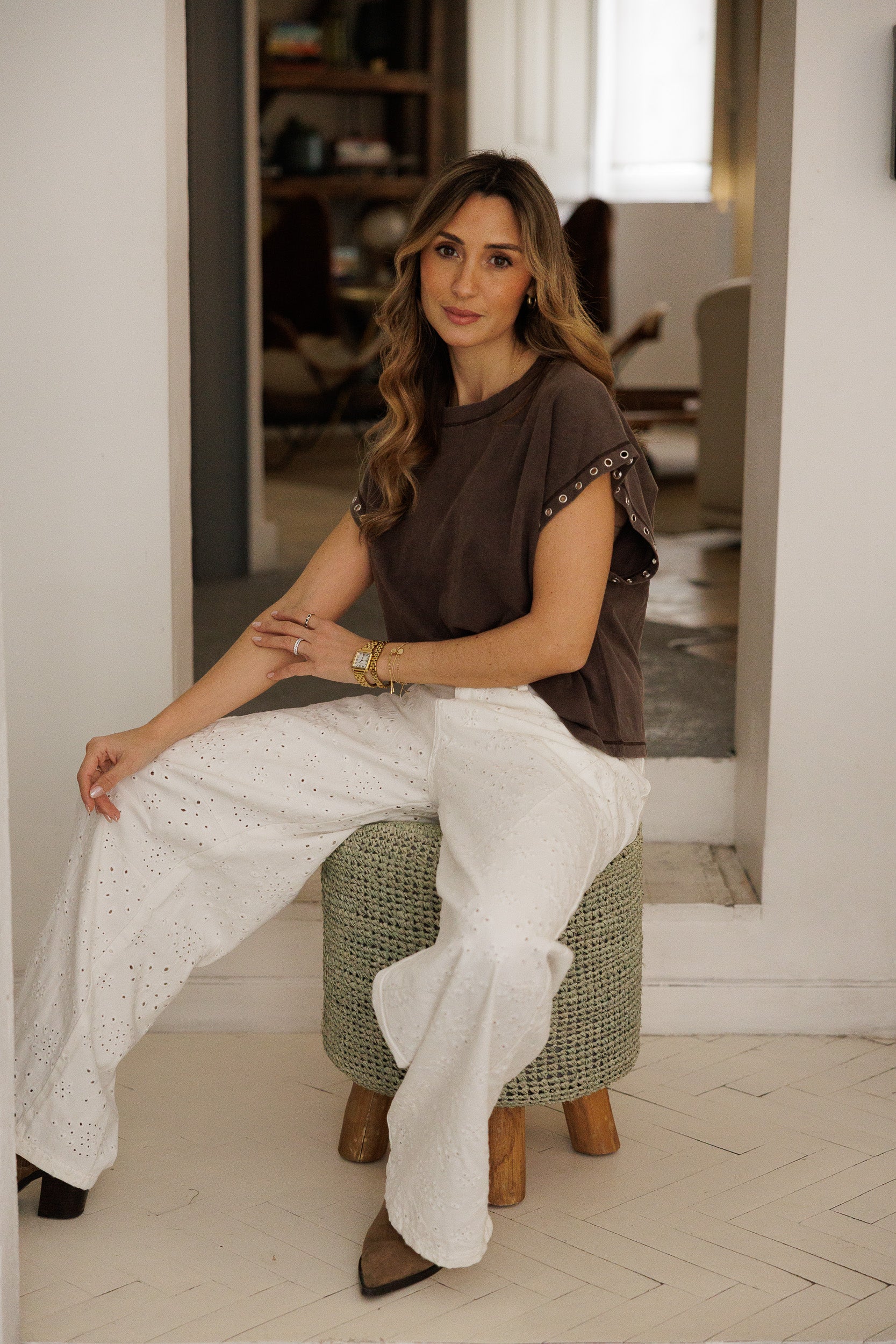 Modelo mede 1.67 e veste o Tamanho S/M.