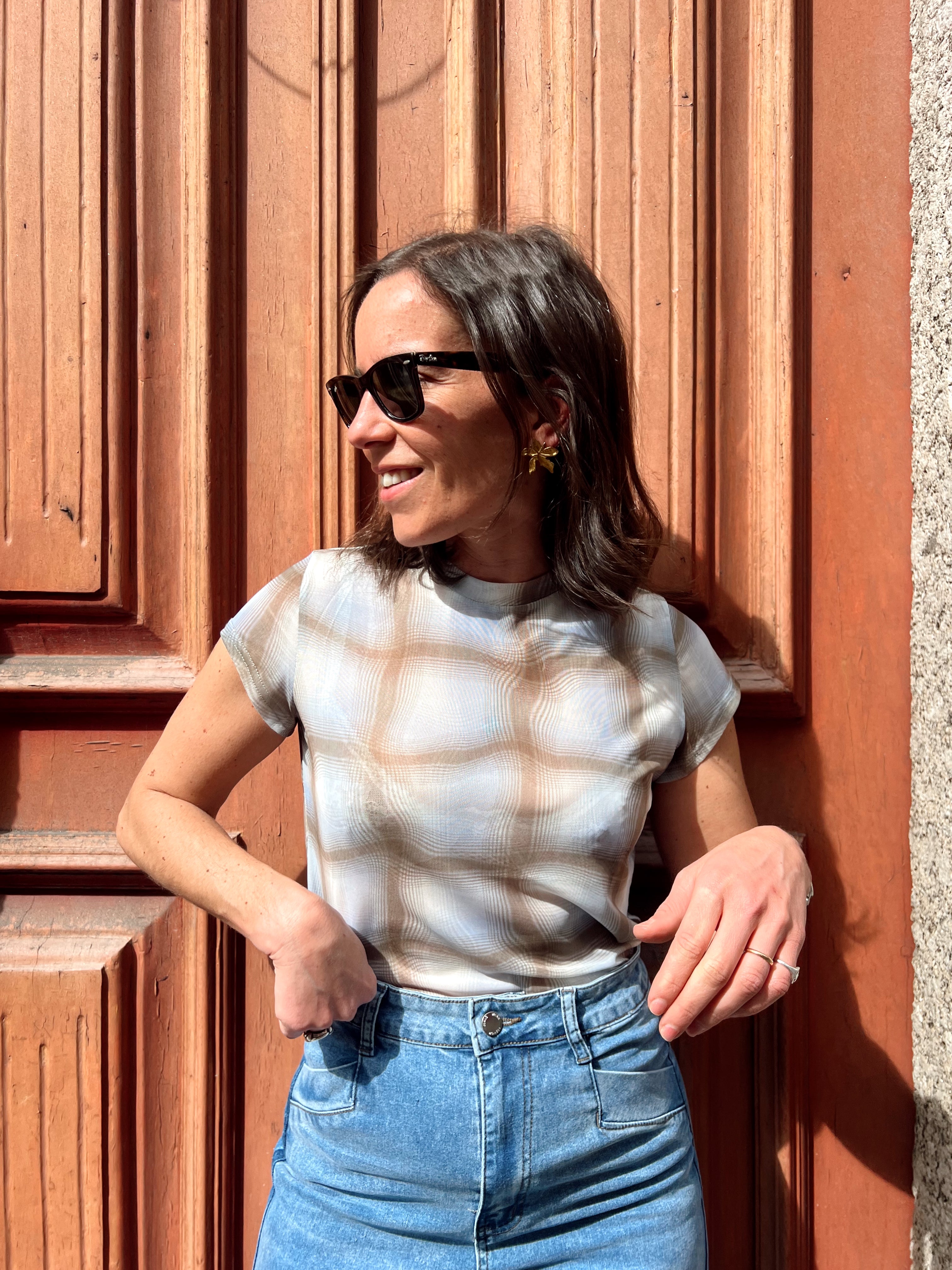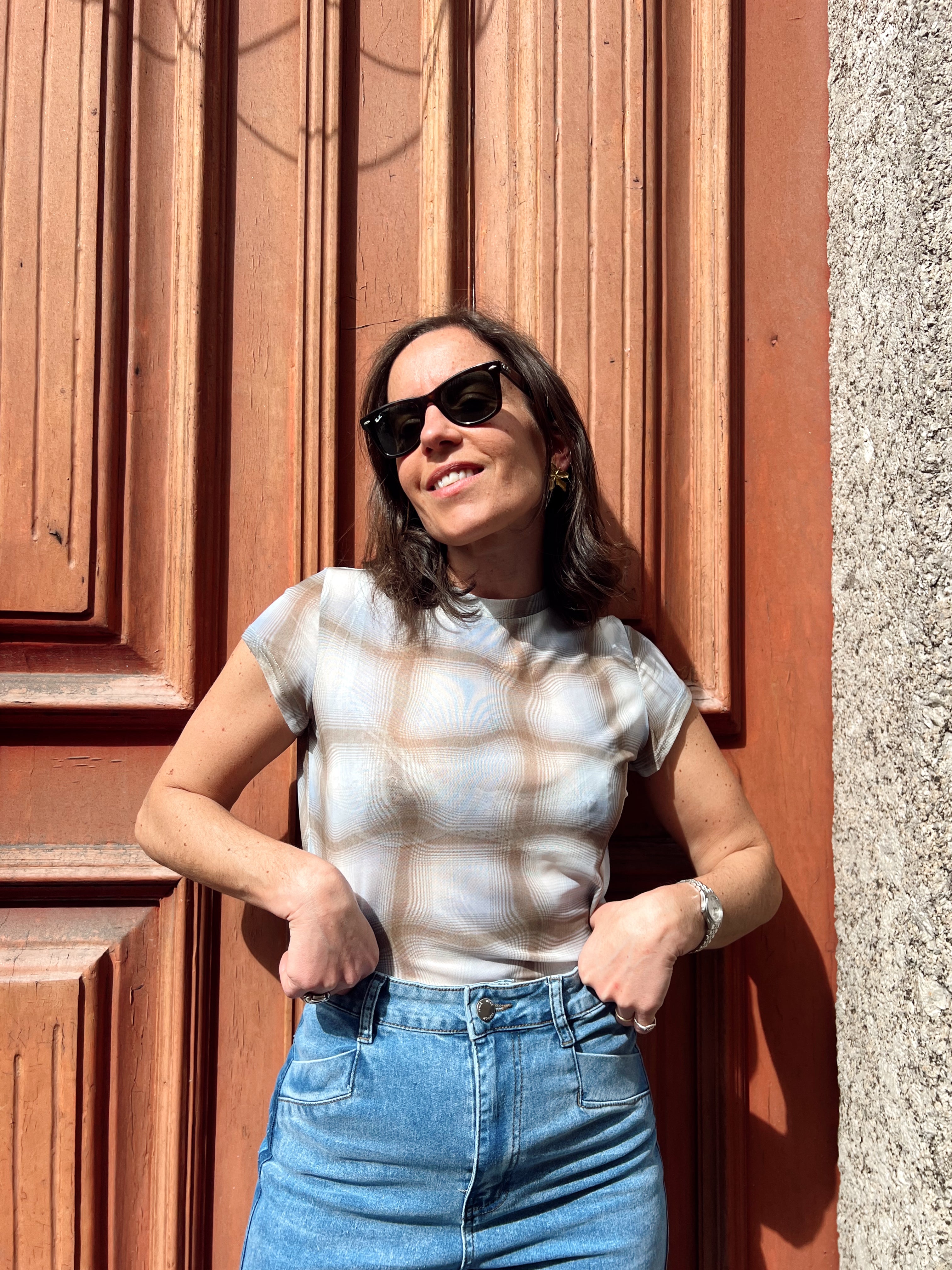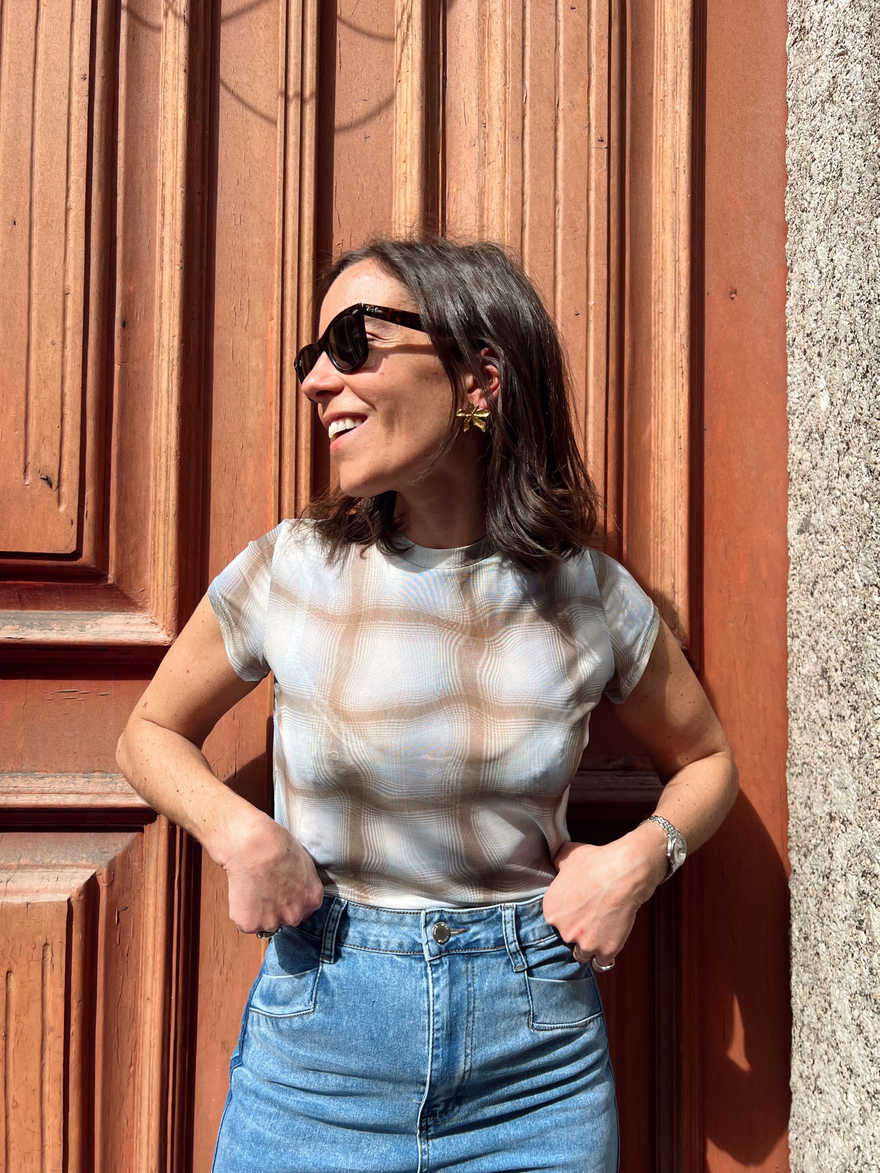 Modelo mede 1.67 e veste o Tamanho SM.