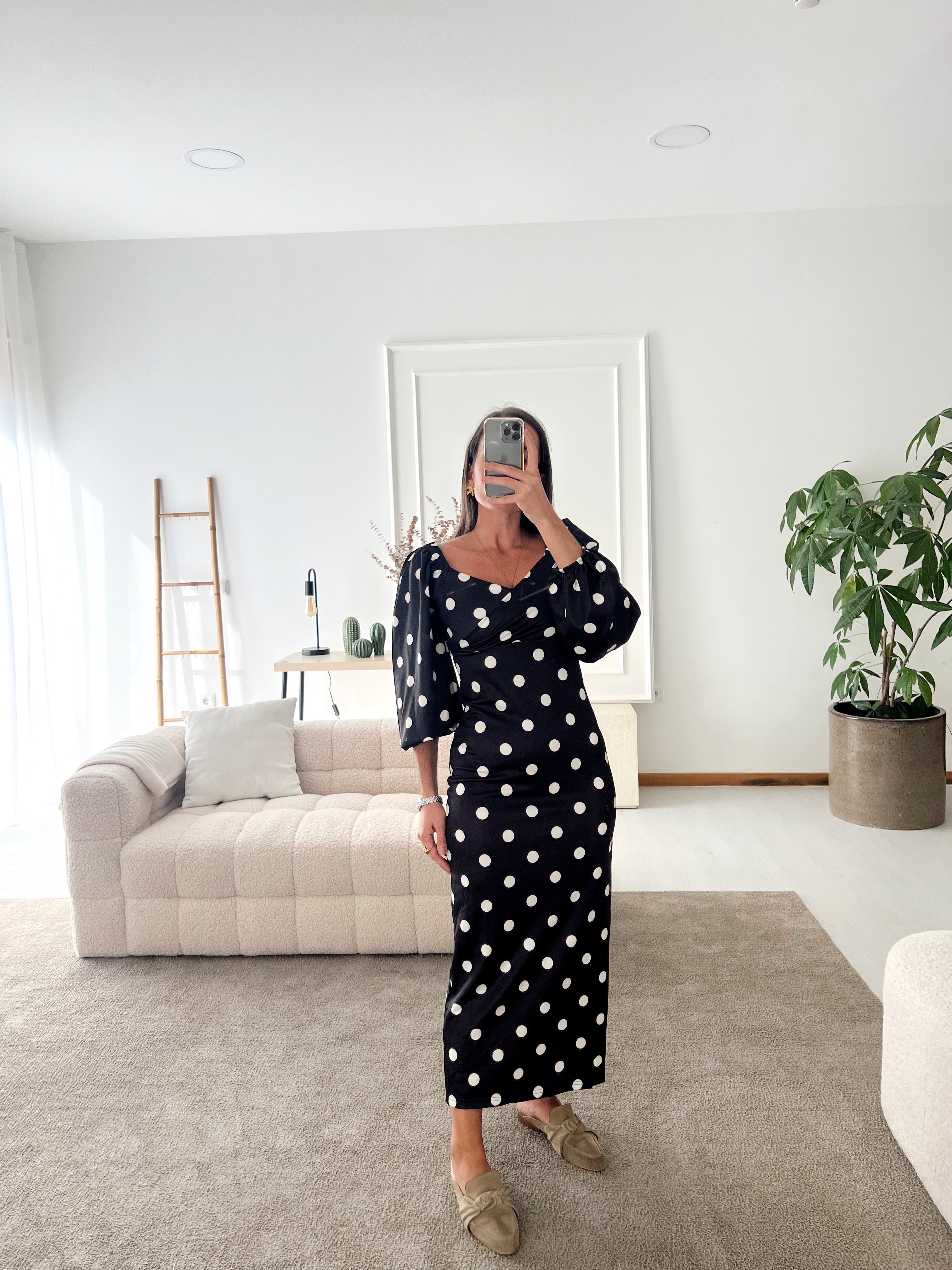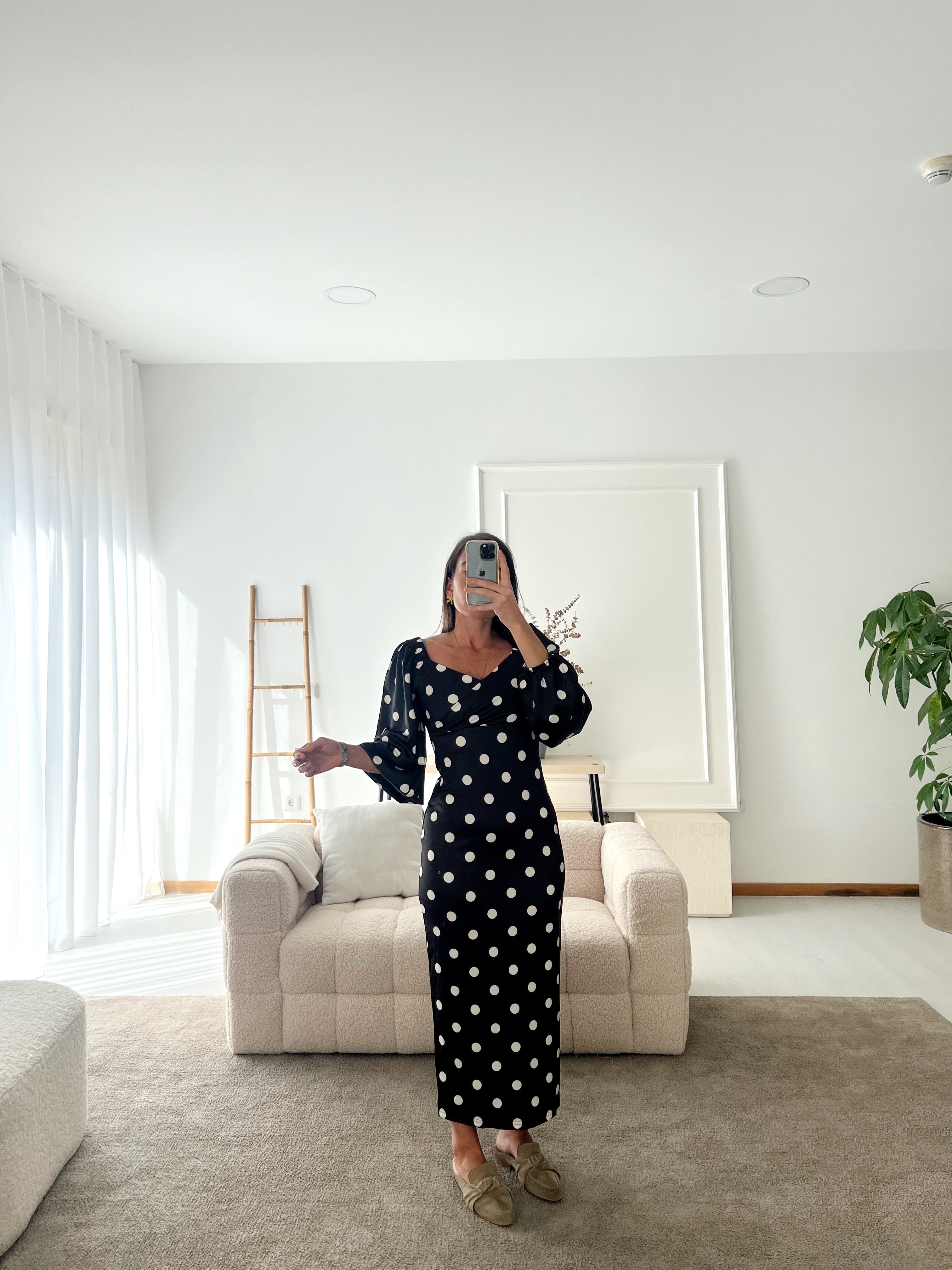 - Vestido de malha de mangas abalonadas.