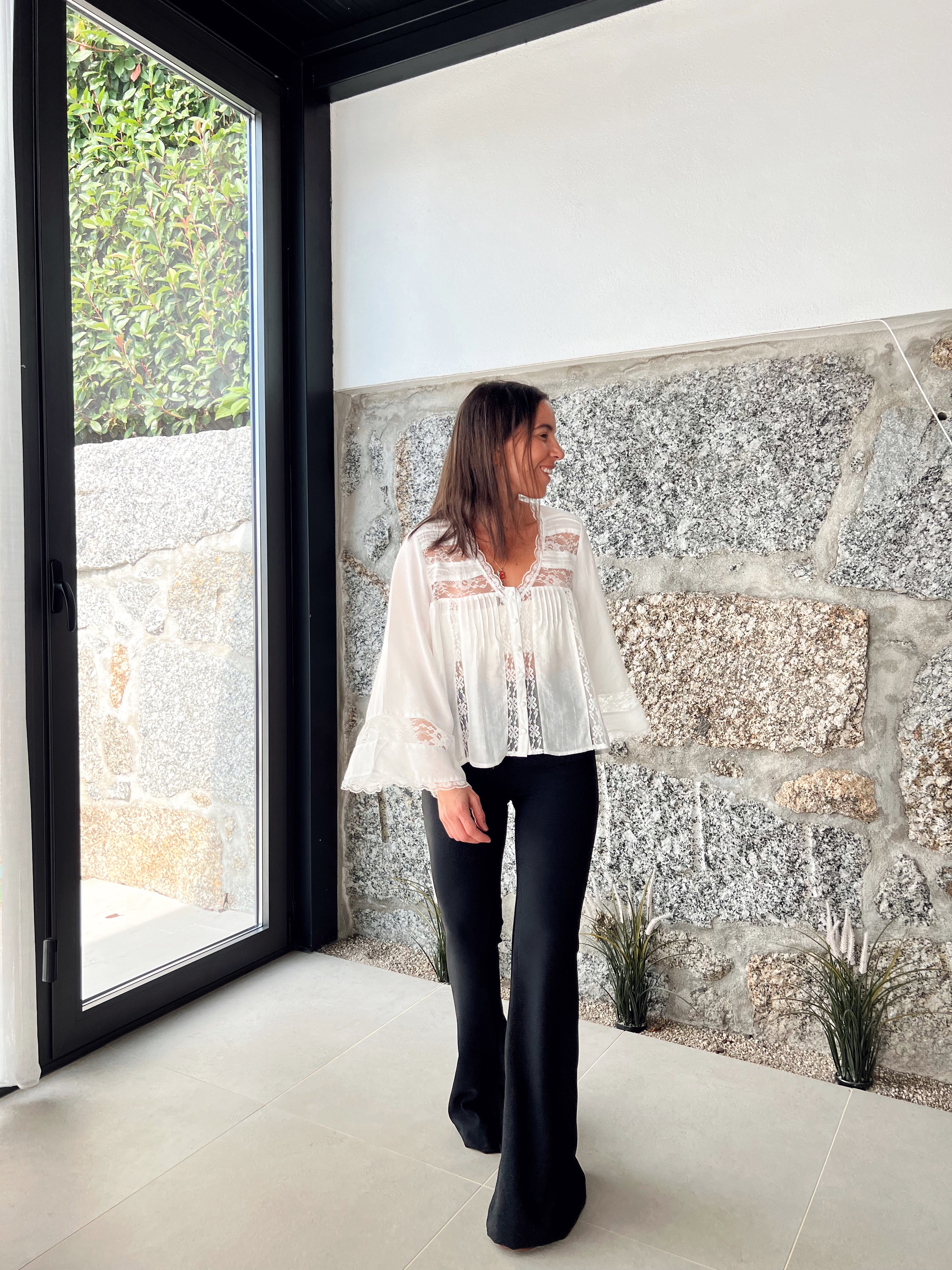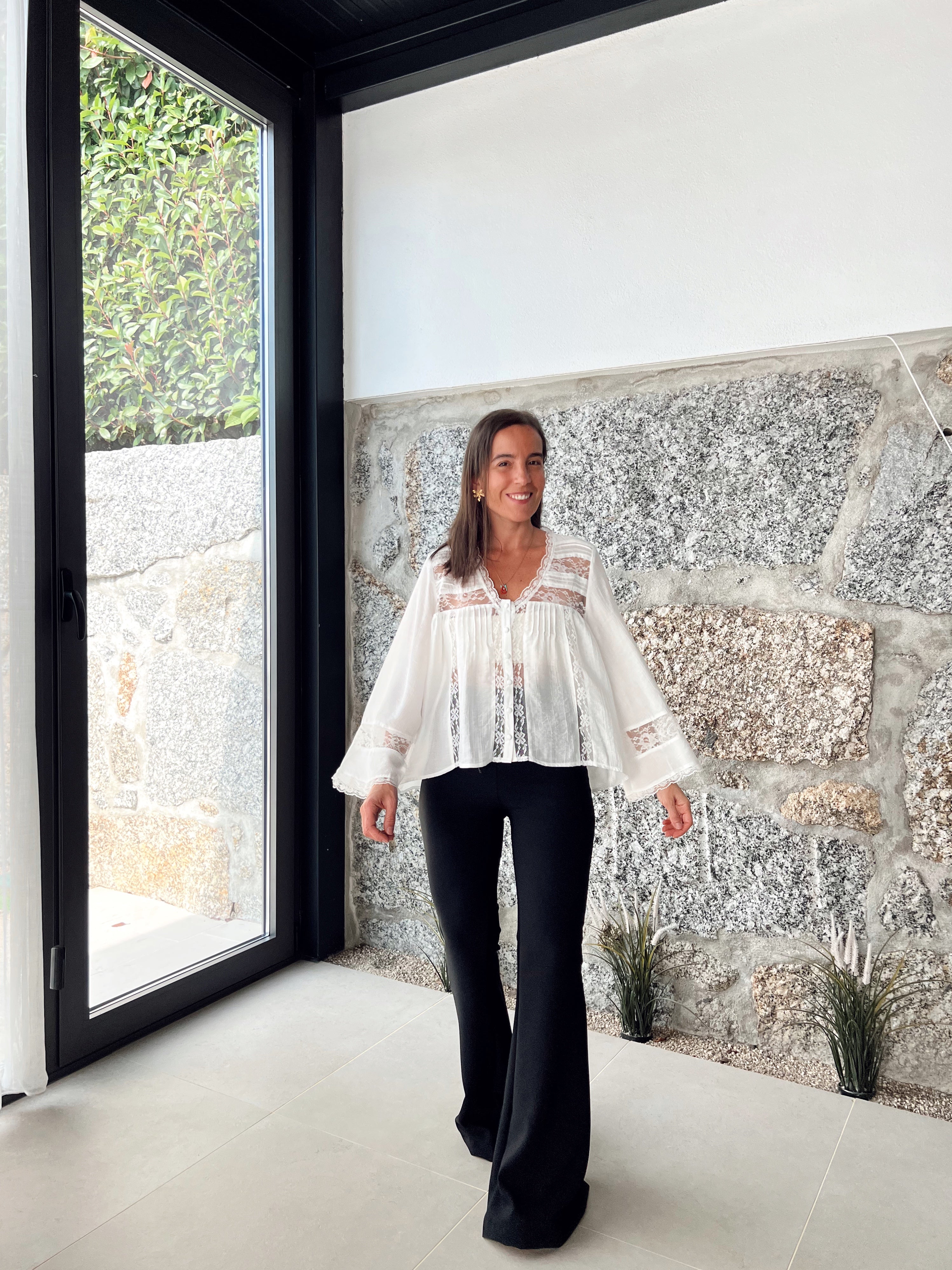 Modelo mede 1.61 e veste o Tamanho S/M.