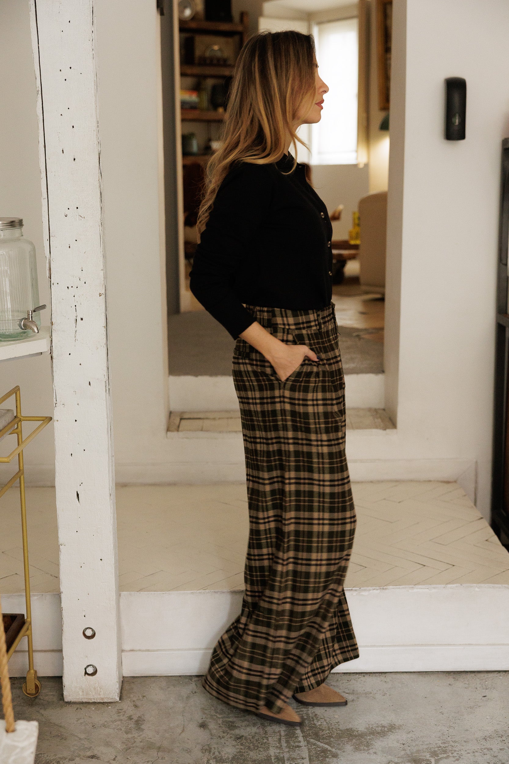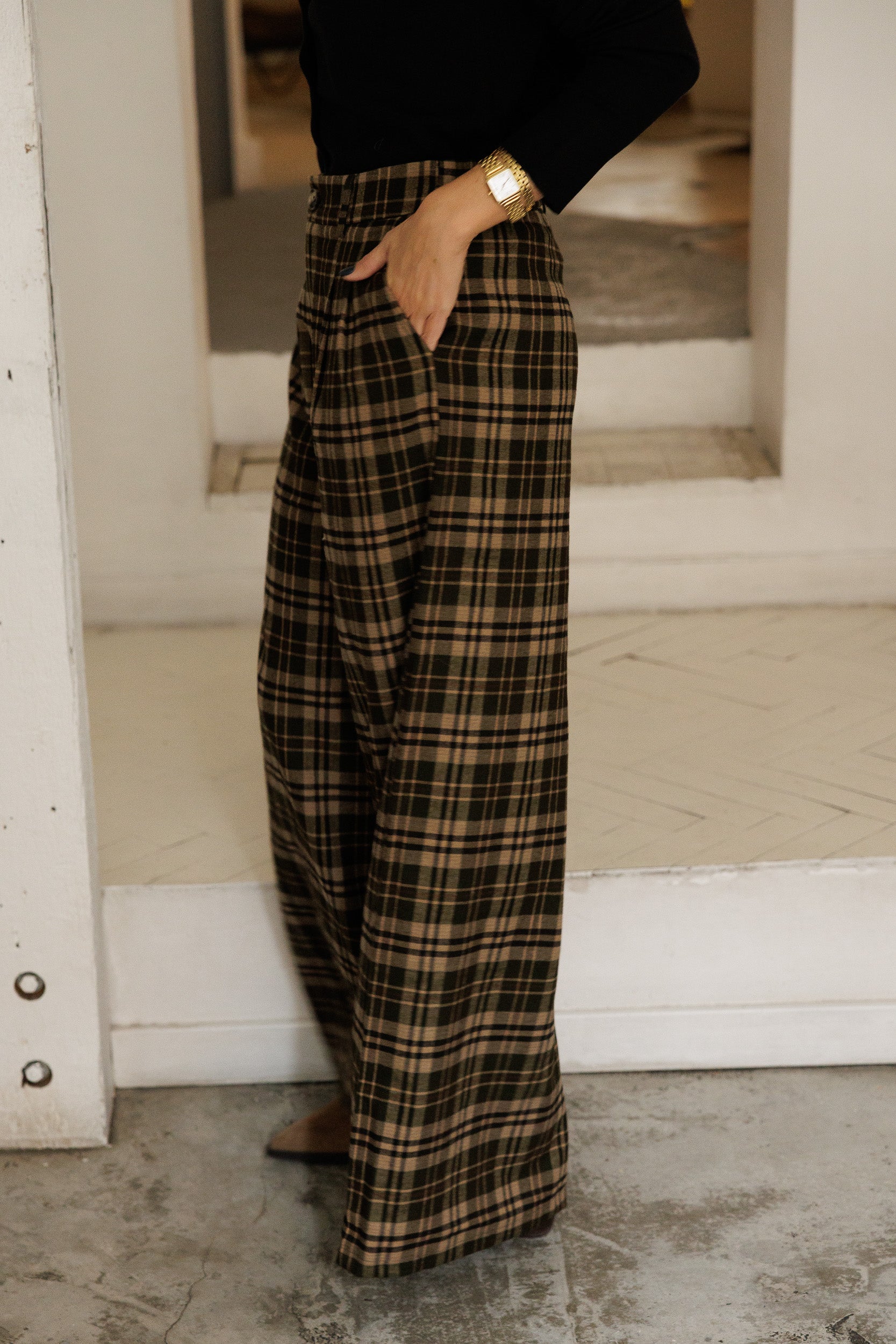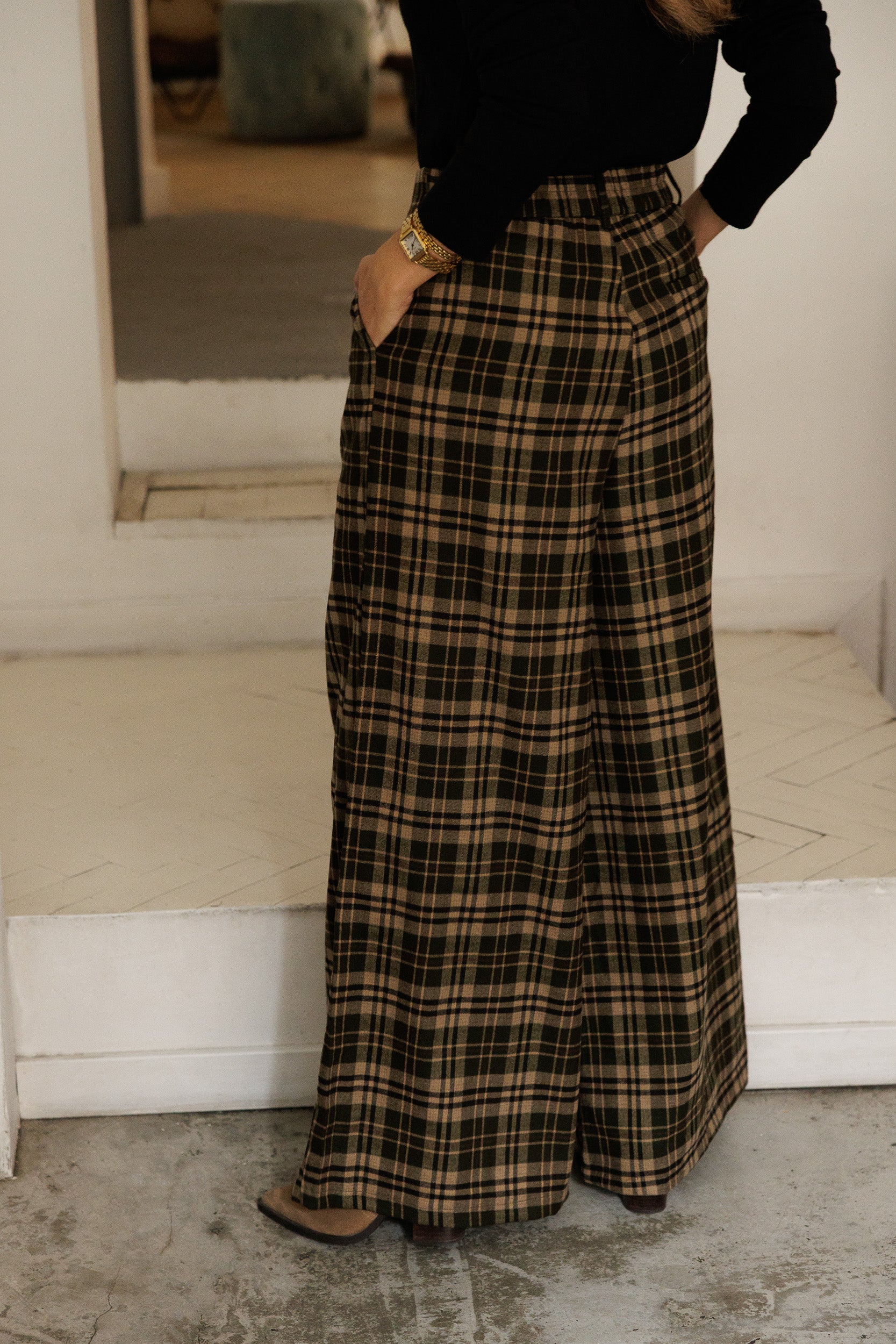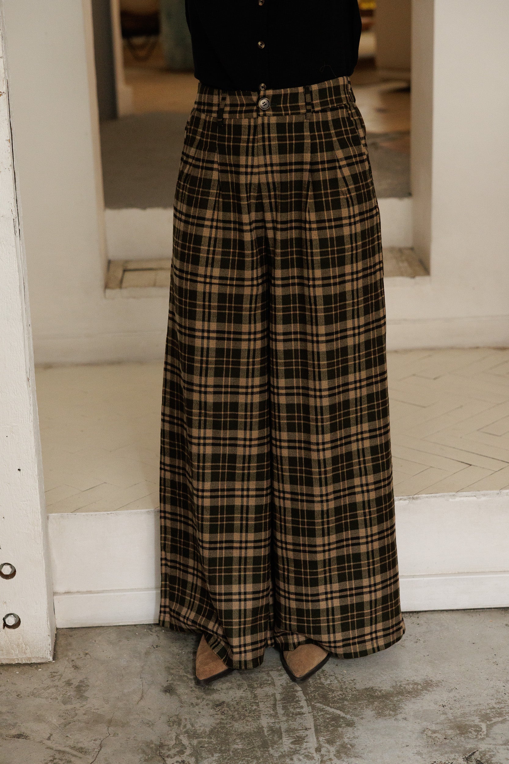- Calças com elástico na cinta. Apertam com fecho e botão.