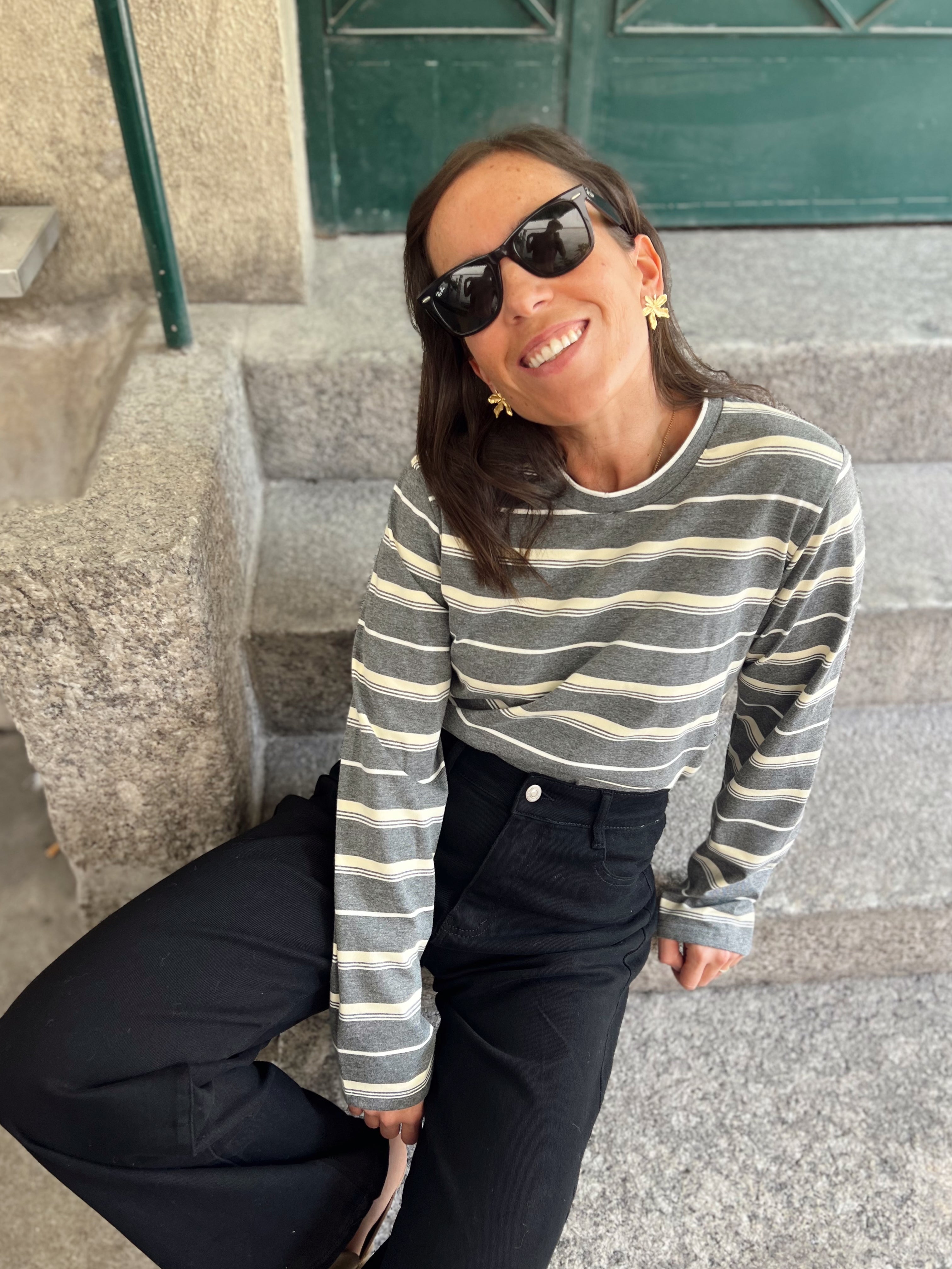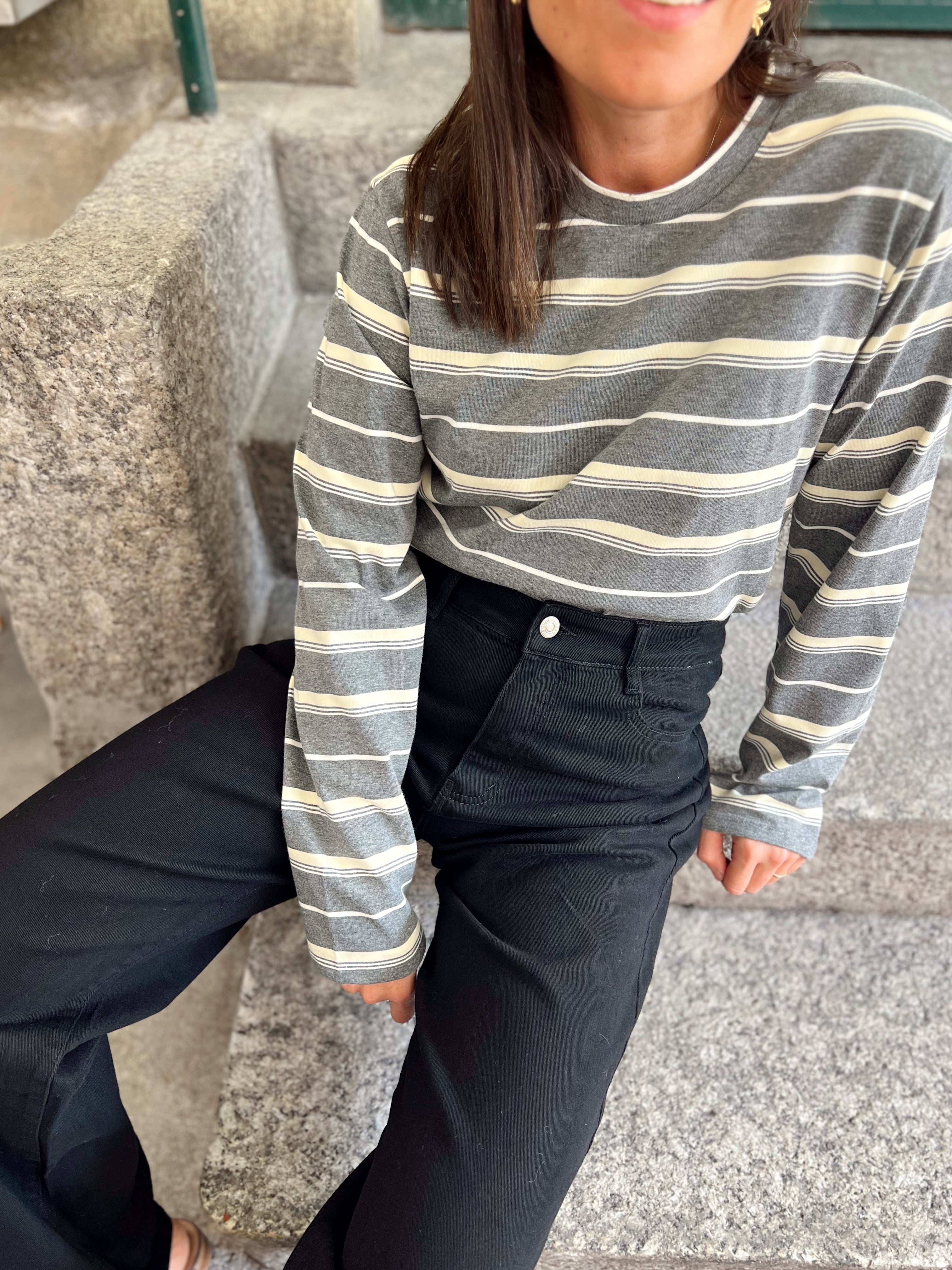 Modelo mede 1.61 e veste o Tamanho S/M.