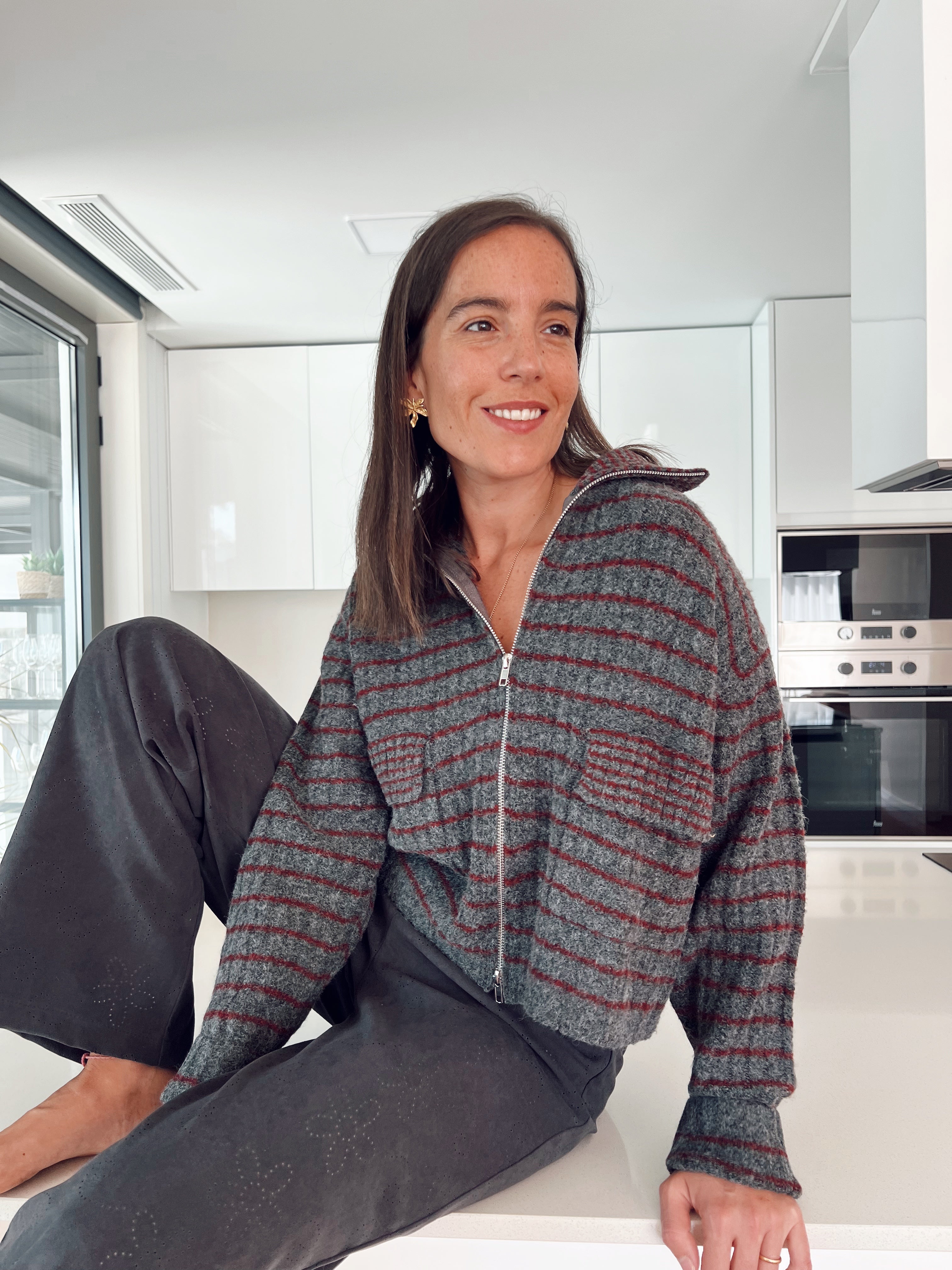 Modelo mede 1.61 e veste o Tamanho Único - 57cm (cava a cava) 49cm (comp.).