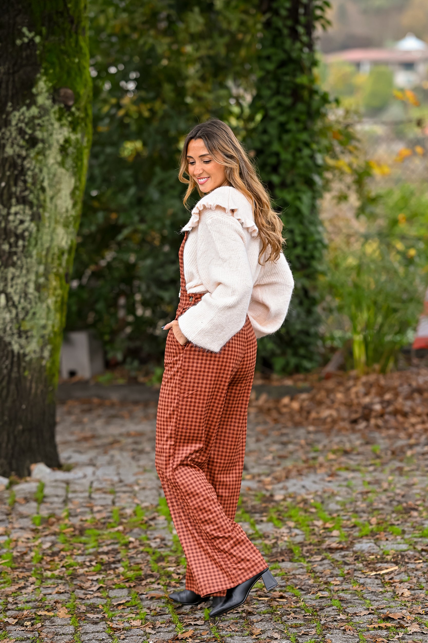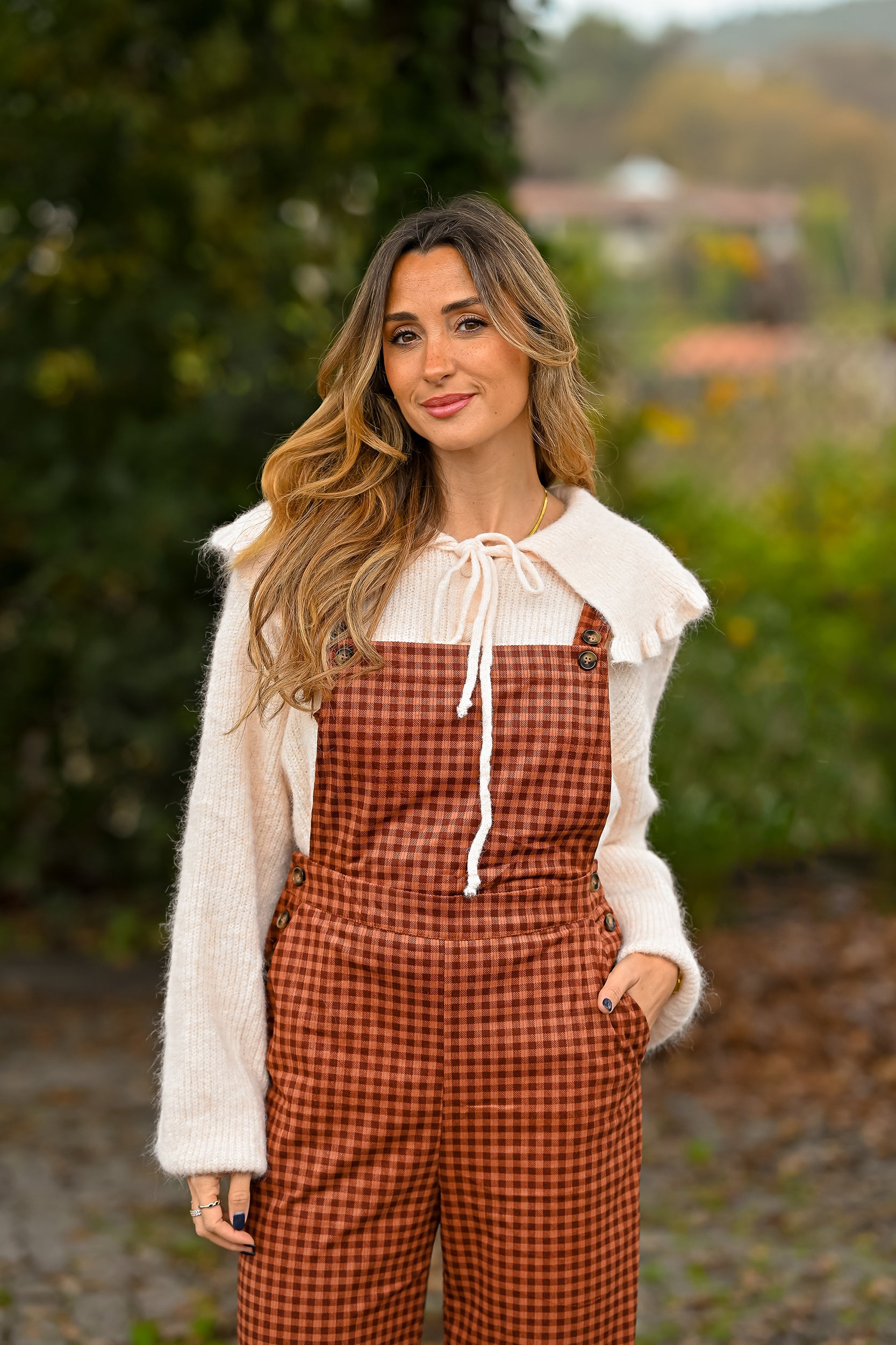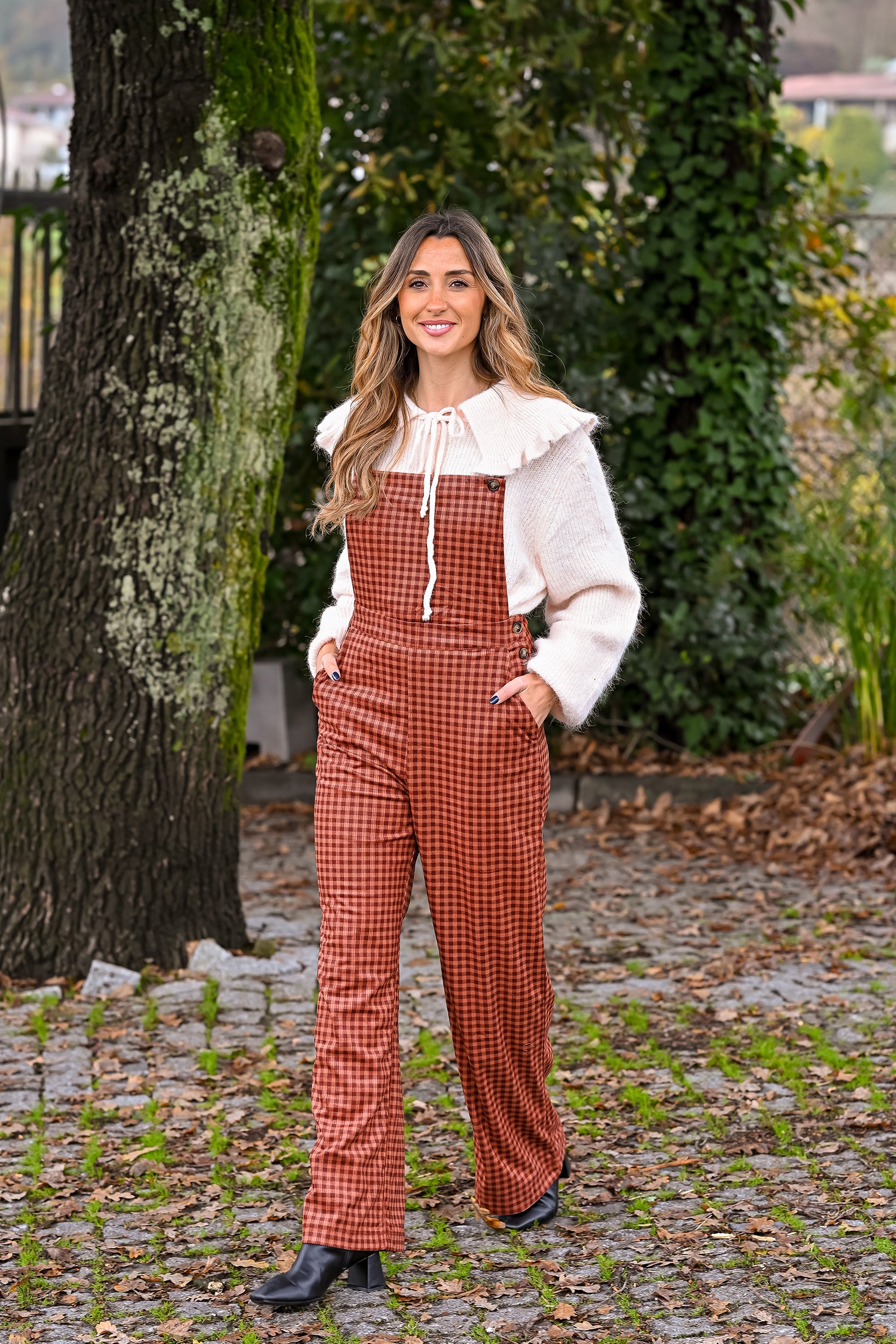 - Jardineiras bombazina com alças ajustáveis. Botões e bolsos nas laterais.