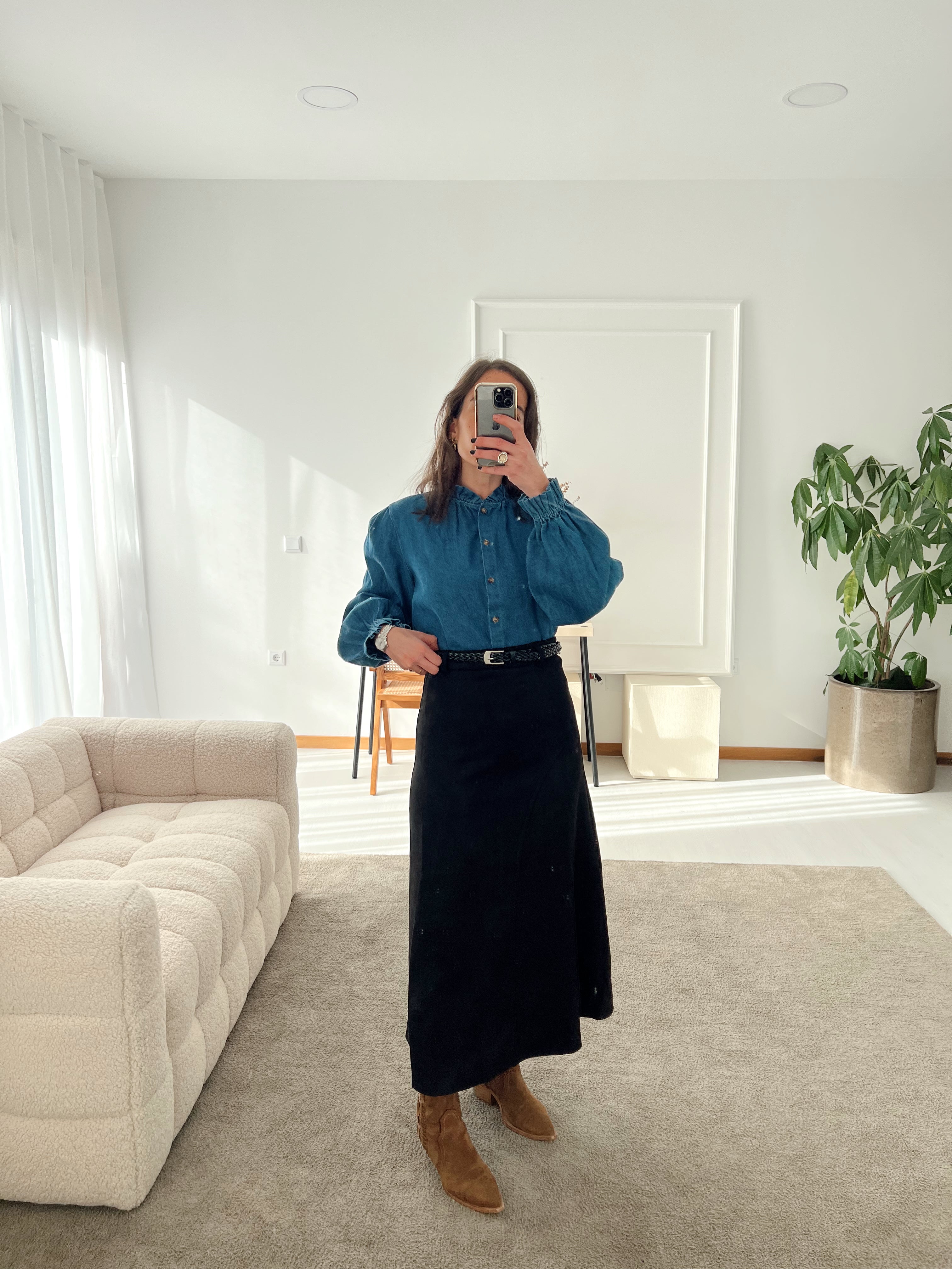 - Skirt with a zipper in the back. Includes a belt to complete the look.