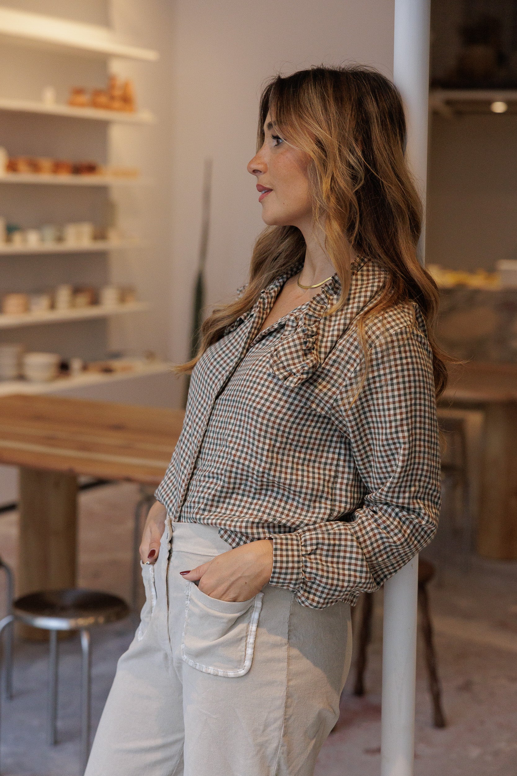 El modelo mide 1.67 y usa la talla S