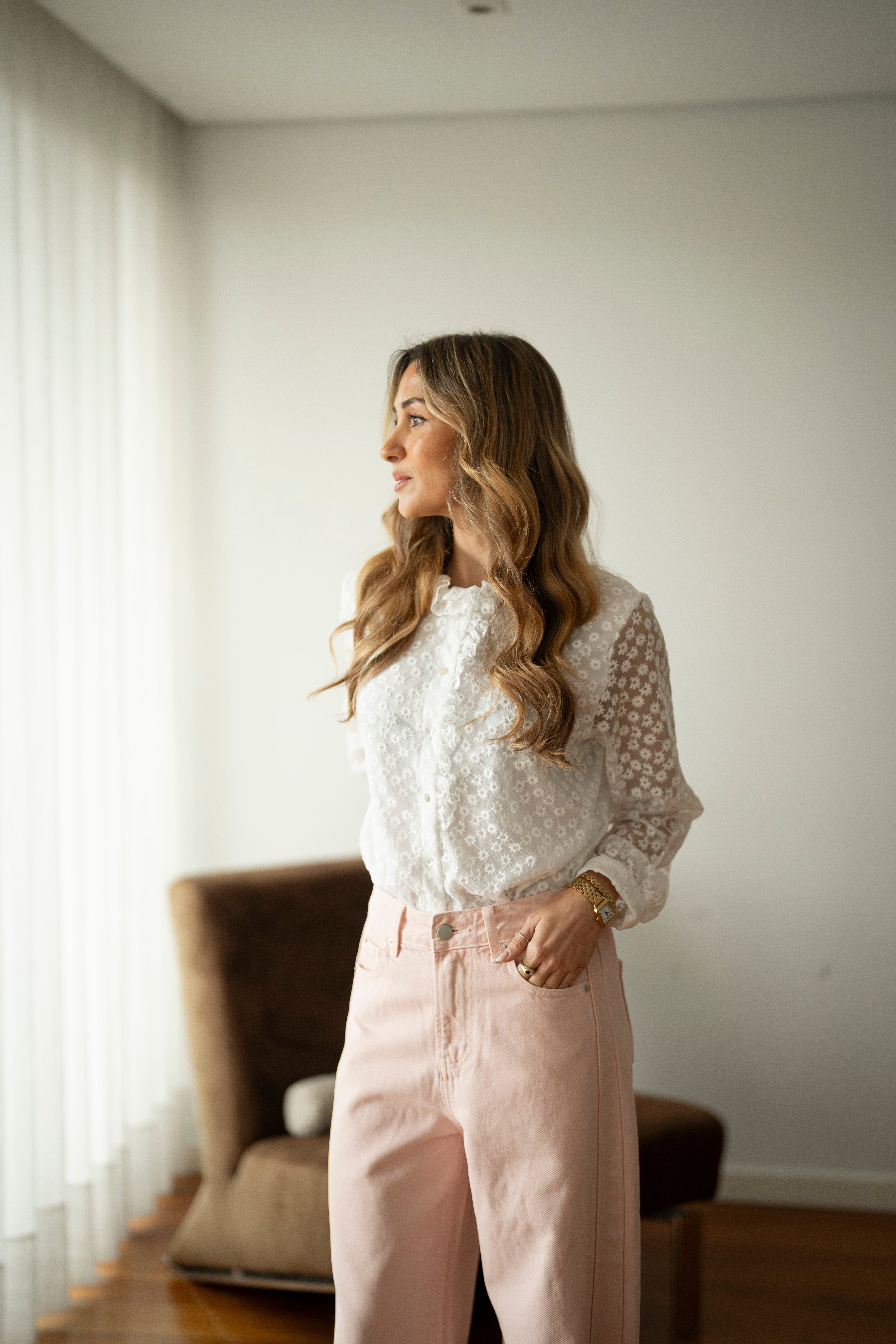 Modelo mede 1.67 e veste o Tamanho S/M.