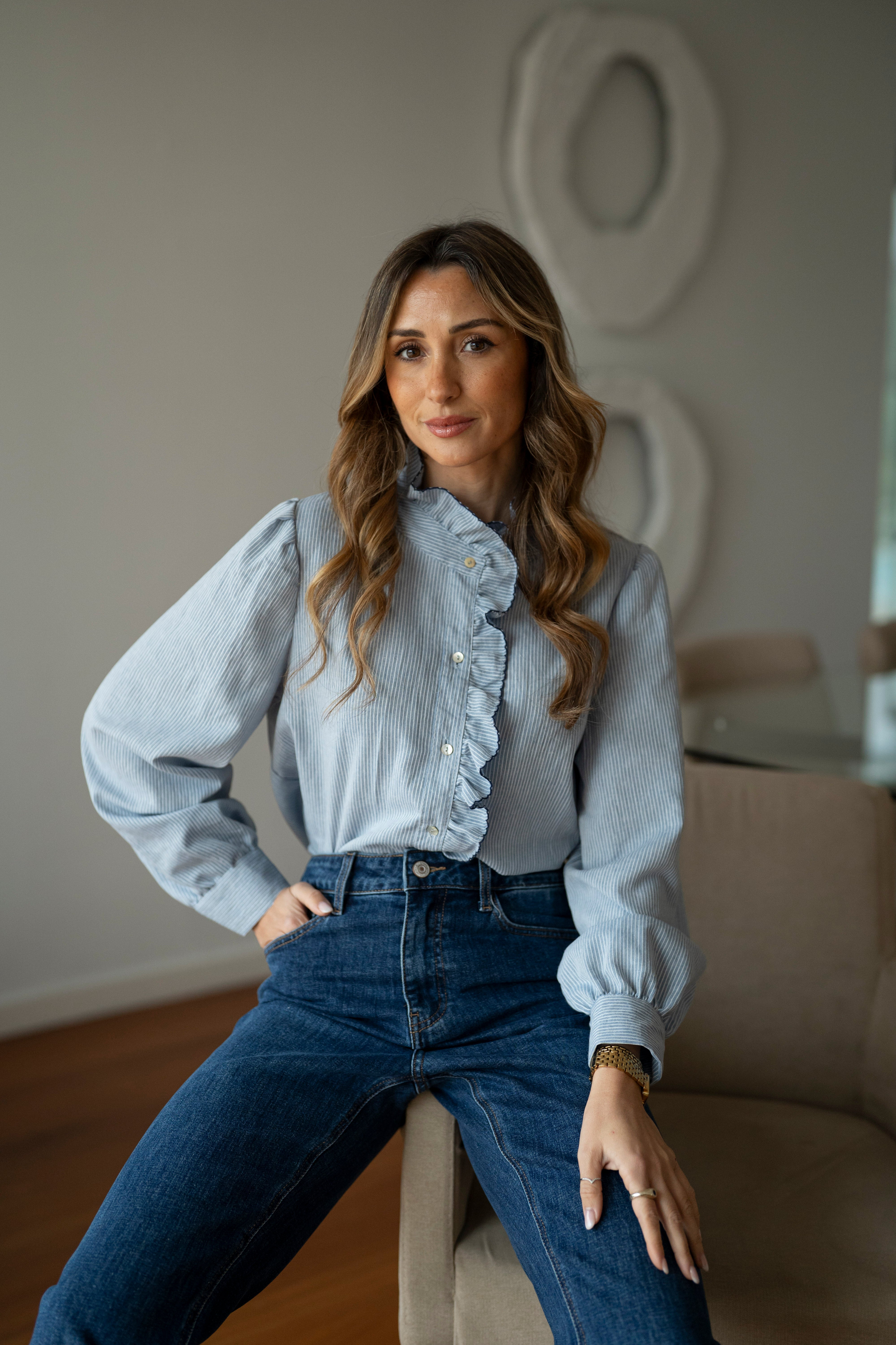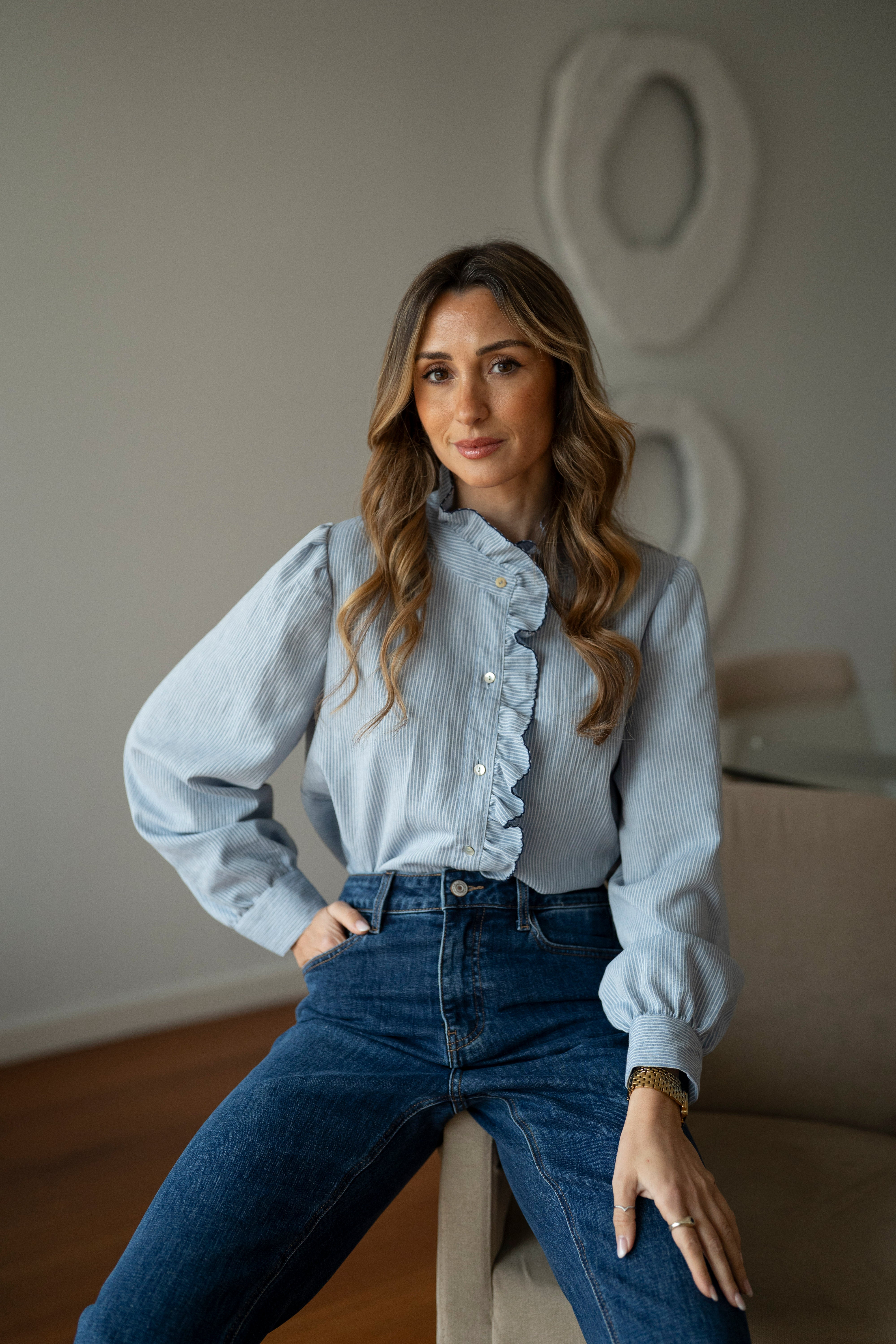 Modelo mede 1.67 e veste o Tamanho S/M.