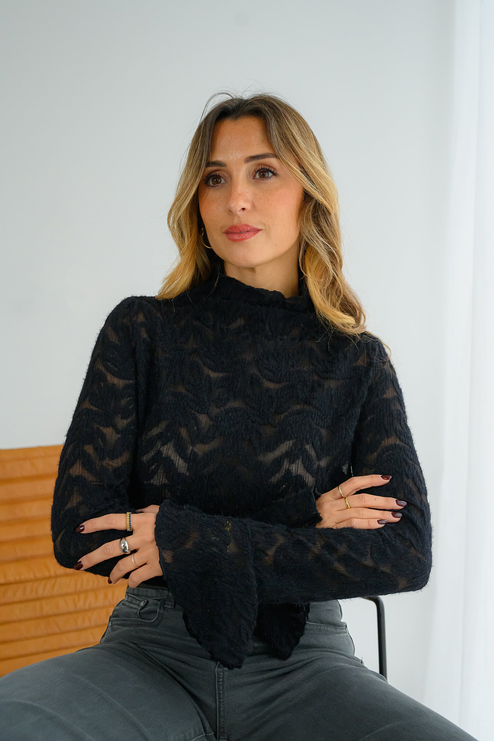 Modelo mede 1.67 e veste o Tamanho S/M.