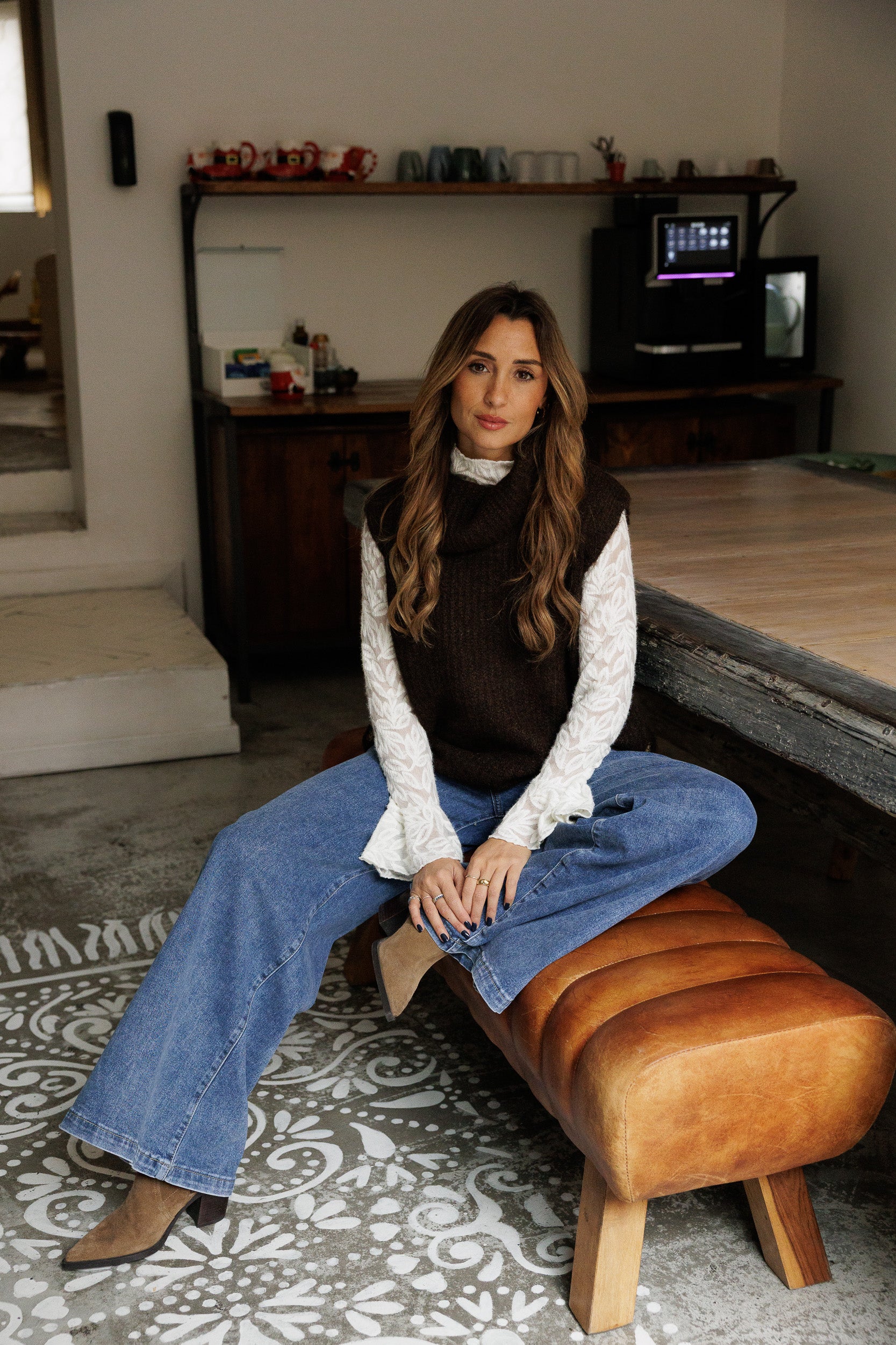 Modelo mede 1.67 e veste o Tamanho Único | 51cm (cava a cava) 57cm (comp.).